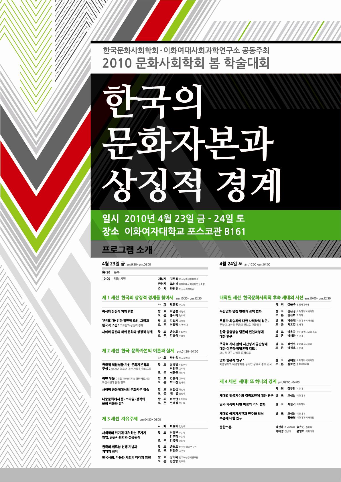 2010 한국문화사회학회 봄학술대회 (4.23-24/이화여대)