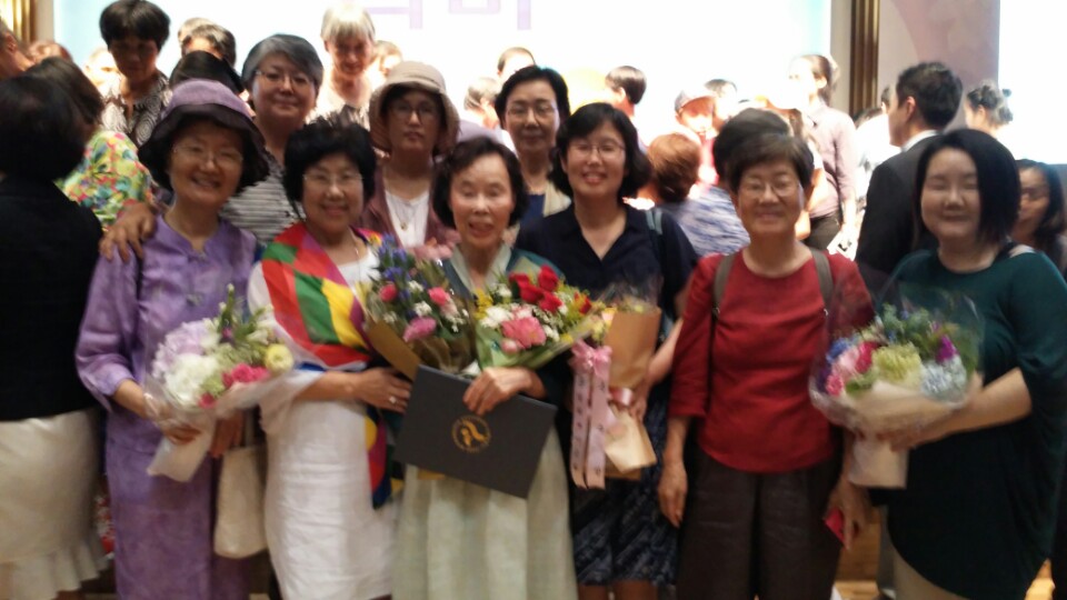 우리회 회원이시며 자문위원이신 김혜원 선생님께서 서울시에서 주는 '서울평화상'을 수상하셨습니다. 김혜원 선생님은 정대협 실행위원으로 초기부터 물심양면으로 일하신 공로를 인정받아 수상하시게 되었습니다. 시상식은 8월12일 서울시청 8층 다목적홀에서 광복 70주년 기념 평화콘서트 '나비'가 열린 후 열렸으며, 이날 일본군'위안부' 피해자인 길원옥 할머니도 수상하셨습니다. 우리회를 위해서 오랫동안 애정과 열정으로 일해오신 김혜원 선생님의 수상을 축하드립니다.